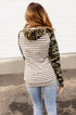 - Color: Brown & Oatmeal Stripes w/ Camo Print Sleeves