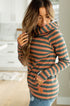 - Color: Olive, mustard, and pink stripes with light heathered grey accents