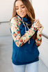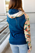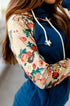 - Color: Royal blue body with tan floral sleeves