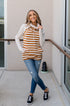 - Color: Maple/white striped body, cream/tan striped sleeves