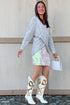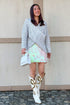A soft, feminine wrap knit with the prettiest drape. Cozy, flattering, and made for sweet moments.