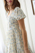 A dreamy floral mini with a square neckline, short puff sleeves, lace trim, and a front hook-and-eye closure. Finished with back smocking for a comfy fit and a soft A-line silhouette. Fully lined.