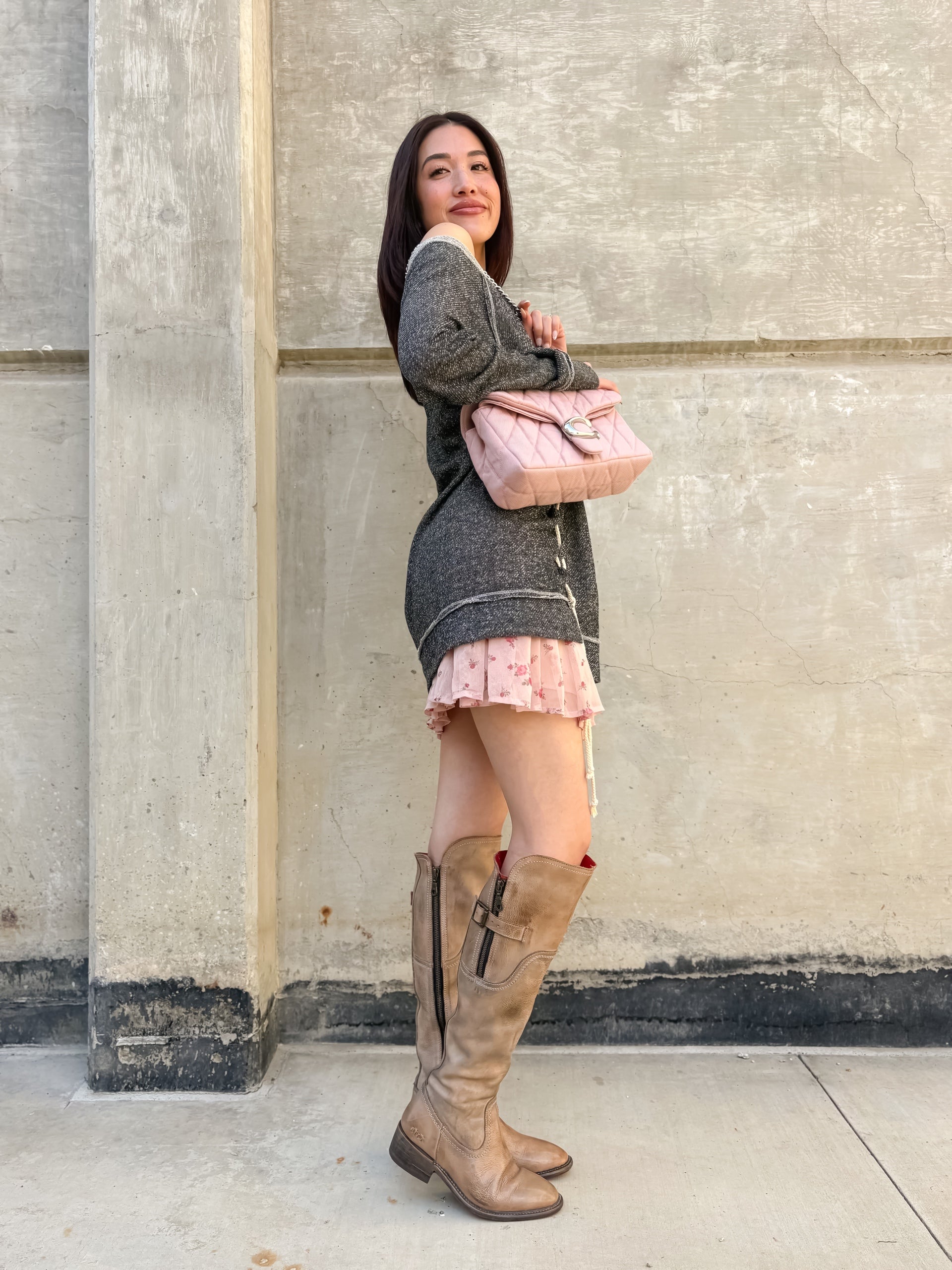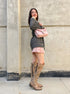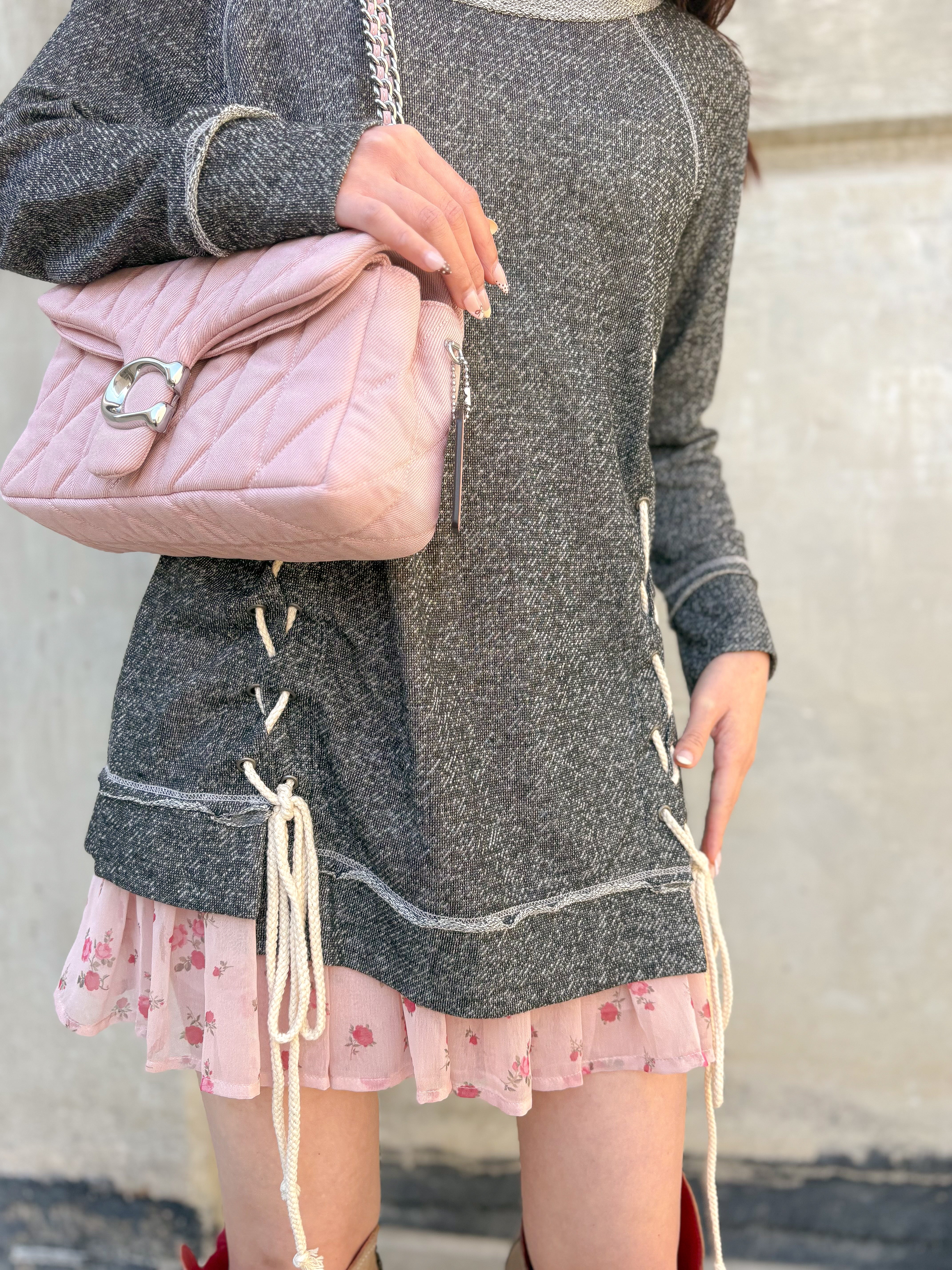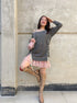 Cozy up in our Fireside Lace-Up Pullover. A heather charcoal coloring gives you a nice neutral color to pair with your wardrobe items. This comfy top features french terry fabric adorned with grommet and lace-up details. The versatile tunic length makes it perfect for wearing over skinny jeans, jeggings, and leggings. Raw edge detail throughout provides additional uniqueness and a well-loved vintage look.