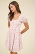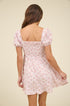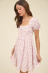 A dreamy floral mini with a square neckline, short puff sleeves, lace trim, and a front hook-and-eye closure. Finished with back smocking for a comfy fit and a soft A-line silhouette. Fully lined.