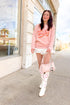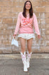 Your weekend mood, but softer. The Friday Feels Crewneck wraps you in blush-pink comfort and that first-sip-of-iced-latte happiness. Lightweight, cloud-soft, and made for feeling cute. Wear it for coffee dates, beach strolls, long drives with the windows down, or just because it feels like Friday in your heart.