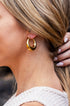 18K STAINLESS STEEL MOD HOOP EARRINGS DETAILSTarnish Resistant Stainless Steel 18K Gold Plated Measurement: 1.25" X 1.37" Latch Back Closure Wear Everyday Waterproof Sweat Proof