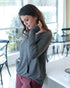 Melissa is 5'5 size 6 and can wear a Small but prefers a size Medium in the Harbor Mist for a slightly more oversized fit.