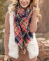 If you love the blanket scarf trend, but don’t always want the extra bulk the Grace & Lace Plaid Triangle Scarf is for you. Introducing the perfect solution the Plaid Triangle Scarf! Now you can rock that trendy, layered style on days when you want the look of a blanket scarf, but with half the size. Made out of the same brushed yarn as the Grace & Lace Blanket Scarves, this versatile triangle shape drapes easily around your neck, and is trimmed with a neutral faux fur pom on each end for an extra fun fall detail! These colorways add a pop of texture and color to any fall outfit. You’ll love how easy this is to pair with our Washed Tencel Cargo Jacket, or layered over our Everyday Chambray shirt, fur vest, and our Denim Jeggings! Whether it’s a trip to the pumpkin patch, a day out with friends, or gathering for family pictures - this Plaid Triangle Scarf is the perfect addition to your cool-weather style!