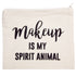 Keep your makeup handy in this cute makeup bag that reads "Makeup is my spirit animal". Choose from black or natural.
