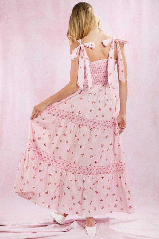 Mixed Floral Print Tie Shoulder Maxi Dress