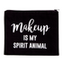Keep your makeup handy in this cute makeup bag that reads "Makeup is my spirit animal".