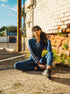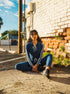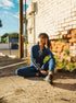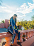 Varsity striped solid knit 2-piece coordinate set with long sleeves hoodie crop top with drawstring and high waisted slim fit pants with drawstring waist.