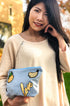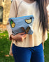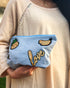 Experience the beach life everyday with the Tropics Pouch in Chambray! Constructed from canvas material and adorned with vibrant sequin patches, this pouch will add some sparkle to any outfit. Perfect for carrying your travels essentials in style!