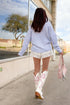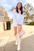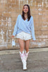 A soft, feminine wrap knit with the prettiest drape. Cozy, flattering, and made for sweet moments.